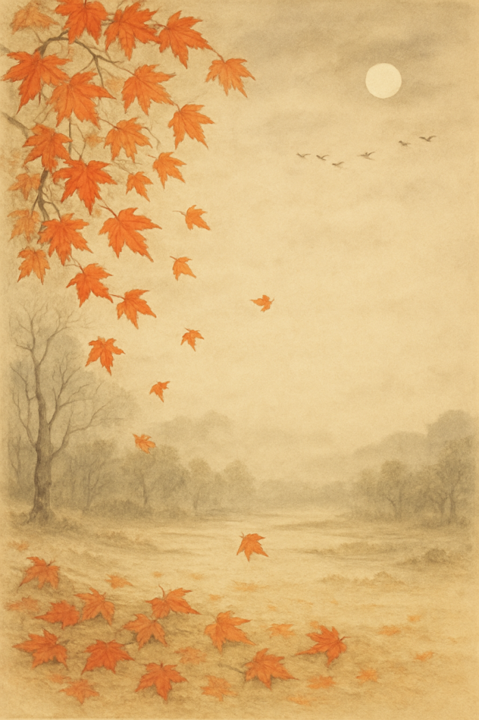 만 잎 붉게 날려 북으로 가는 기러기 따르고,