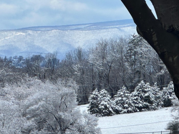 겨울 숲은 쓸쓸하고 그 위로 흰 구름 피어나고