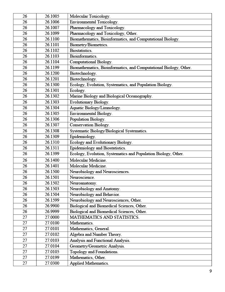 다음은 이번에 발표된 22개의 전공이 포함된 STEM OPT가 가능한 전공들입니다. 이 서류는 또한 다음의 링크에서 다운 받으실 수 있습니다.