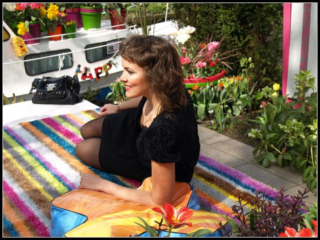 꽃보다 더 아름다운 여인이 되기 위해 화사한 미소를 하늘에 날린다.