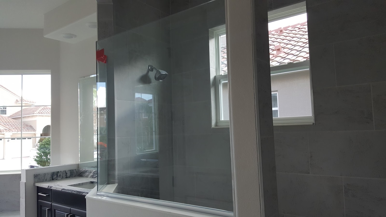 샤워도어가 없는 직사각형 샤워룸이 유행입니다.