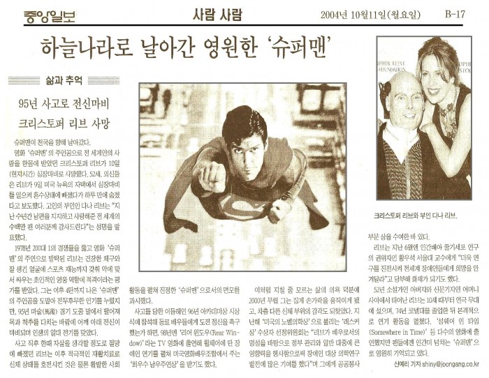 기일이 저 만치 지나 쳤거나 이제가오던가 상관 하지 않고 10월을 생각하여 살아 생전 이 사회들을 위하여힘써 주었던 것을 참작하여 올린다.故크리스토퍼-리브(2004년10월10[일…