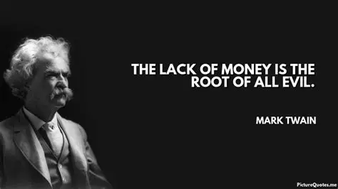 그래서, 미국의 해학가인, Mark Twain은, “돈을 사랑함이 일만악의 뿌리” (The love of money is the root of all evil)가 아니고, “돈이 없는 것이 일만악의 뿌리” (The lack of money is the root of all evil.)라고 갈파함으로, 사도 바울 못지 않은, 통찰력과 지혜를 보여 주었다.