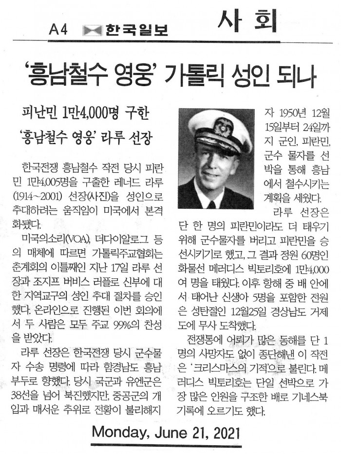 흥남 부두에서의 피난민에 대하여 저술하셨다.