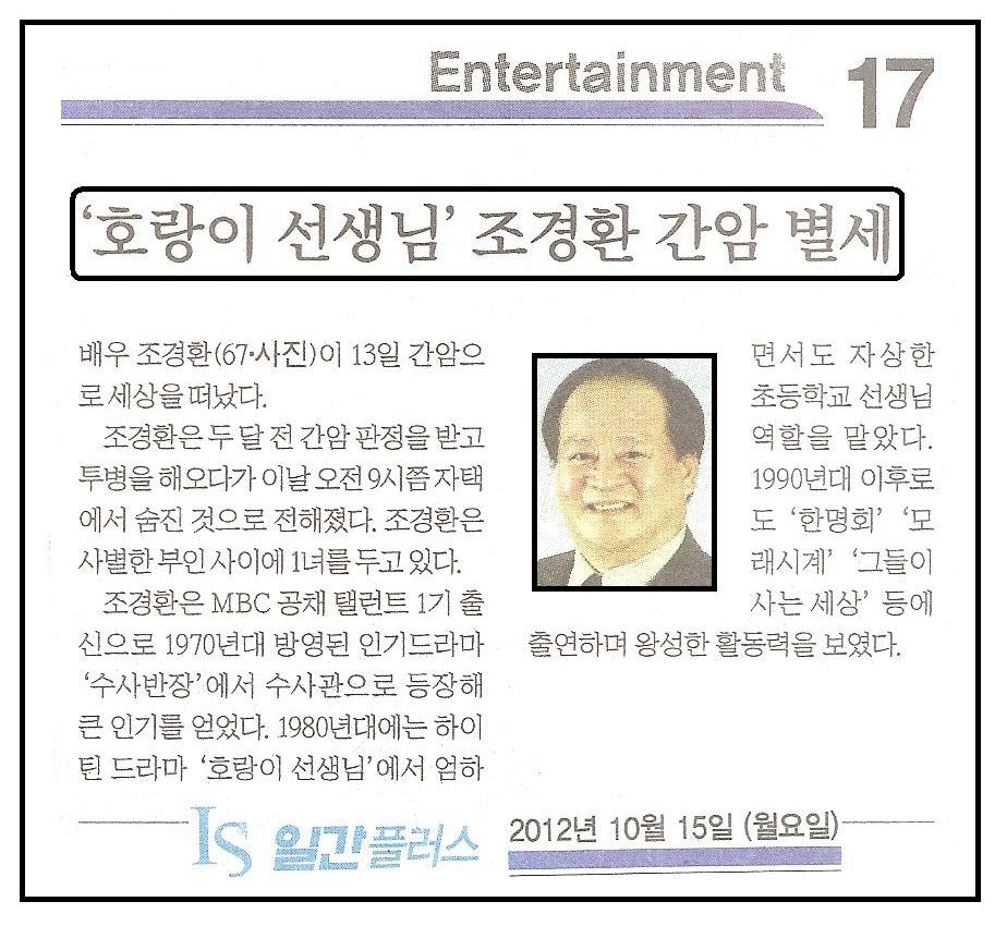 故조경환(탤런트/2012년10월13[토]일 별세/간癌/67세)님
