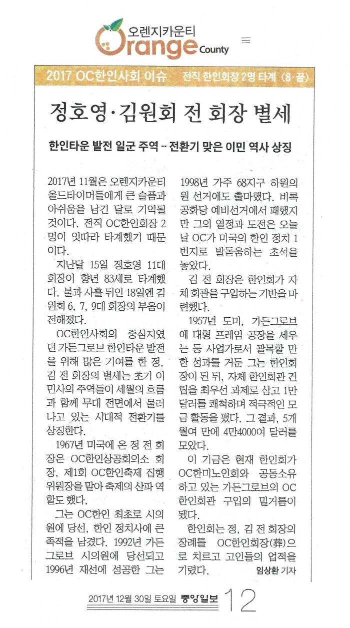 故김원회(OC 제6,7,9대 한인회 前회장)님