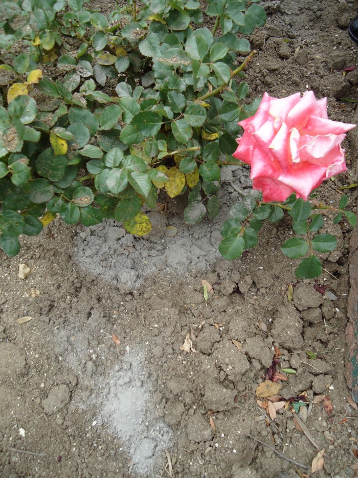 장미 화단에 뿌려진 화장재 모양들