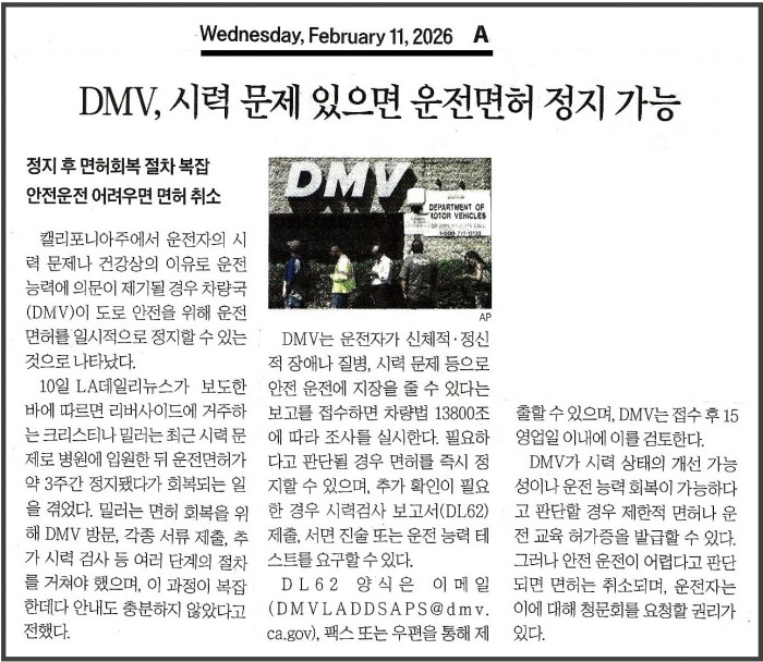 현재에도 시력으로 인하여 DMV