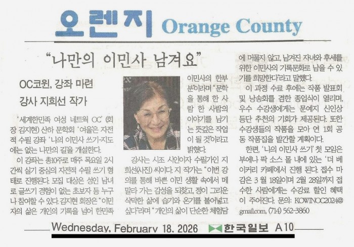 모처럼 뜻깊은 문학의 자전적 수필 강좌!