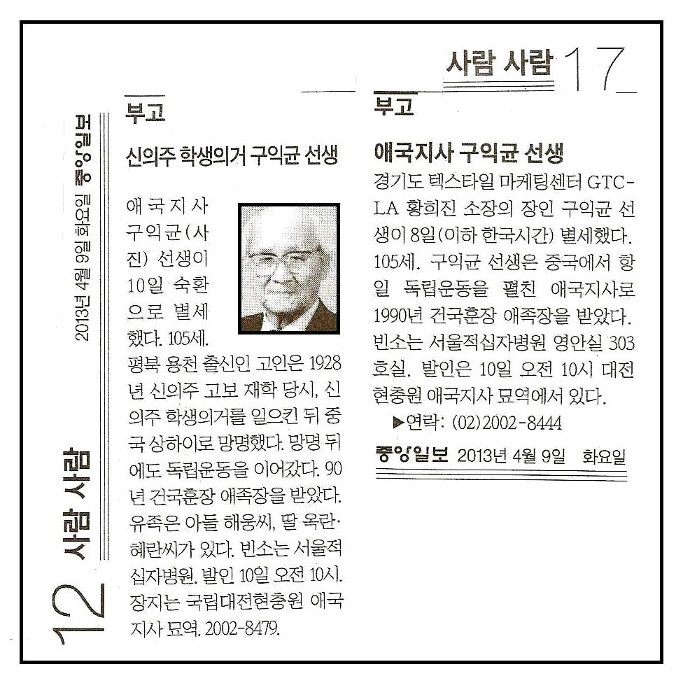 故구익균(애국지사/2013년4월8[월]일 별세/105세)님