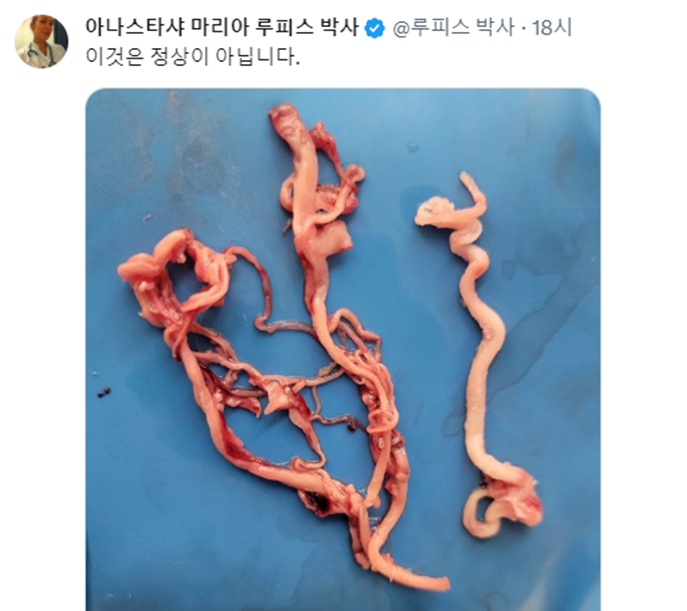 아래 사망자 혈관에서 이상한 물질을 부검으로 이것이 혈전입니까?