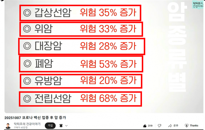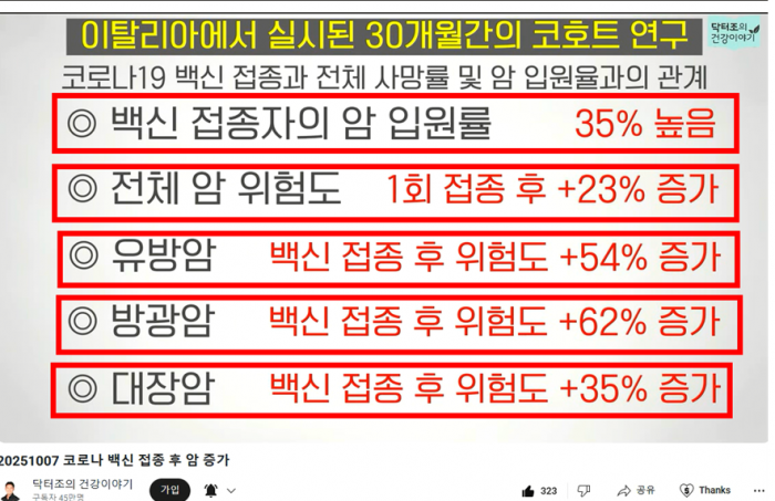 아래 국내 연구기관이 코로나 백신 접종자 대한민국 암 발병 연구 자료입니다.