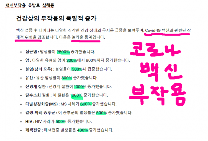 아래 백신 속에 인구 대량 감축 위해서 세상에서 가장 머리 좋은 인간들이 가장 부자들 후원으로 살인 백신을 개발 했는데 미국 질병청 발표로 1280가지 이상 부작용 유발 한다고 합니다.
