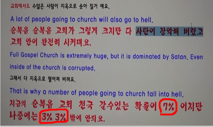 결론적으로 나팔재앙 3년 5개월 동안 구원 받는 자들 빼고 지금 상태에서 천국 가는 한국 성도 비율은 2%도 안 될것으로 추산해 봅니다.