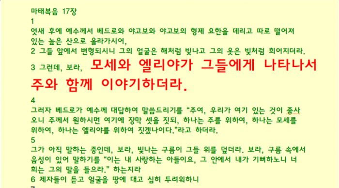 그리고 예수님 십자가 순교 하루 전날 인가요. 그때 엘리야와 모세를 불러 내려서 뭔가 협의를 하셨는지 지시를 두 사람에게 하신 것 기억나십니까?
