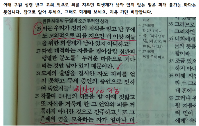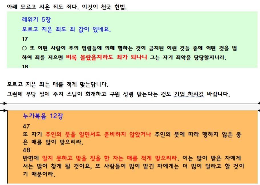 아래 죄가 자동으로 회개 용서 되지 않는 답니다. 목사 장로 권사 선교사 라고 혹은 귀신 잡는 사역자라도 봉사 많이 한 권사 헌금 많이 한 장로 대형교회 목사님이라고 혹은 교회 100년 다니고 새벽기도 50년 했다 치더라도 죄가 자동으로 없어지지 않고 그대로 있답니다.
