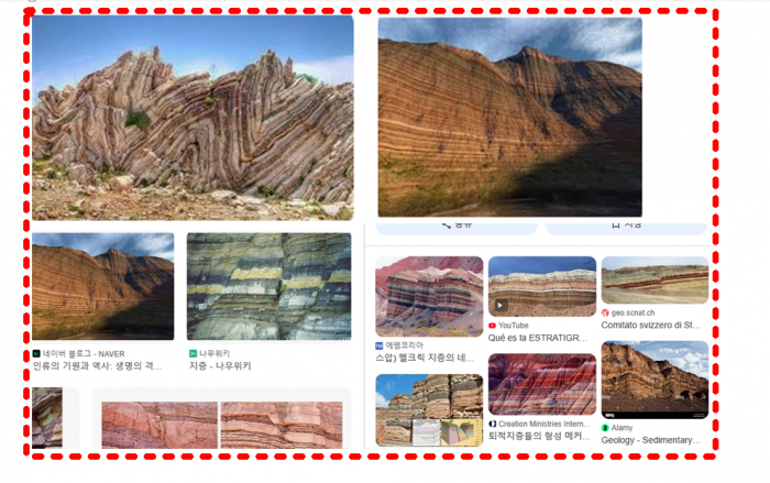 아래 노아 홍수 때 지구를 물로 덮고 있는 동안에 만유 인력에 의하여 강력한 조류로 하루 2번씩 토사가 층층이 쌓인 노아 홍수의
