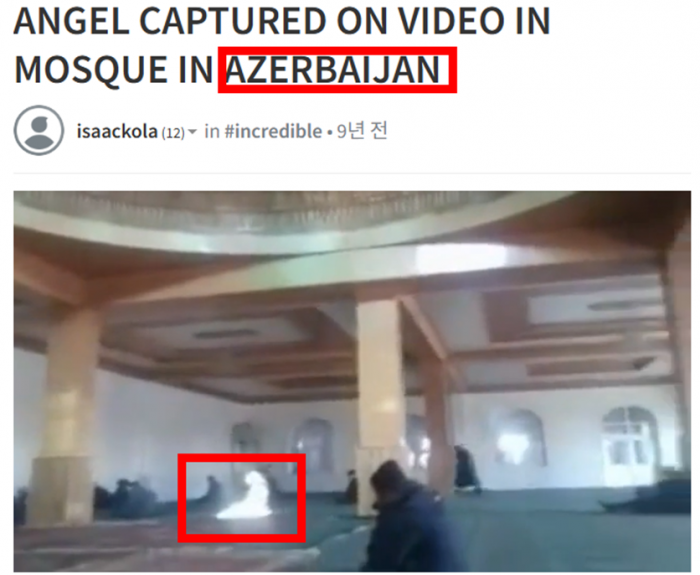 아래 아제르 바이잔 이슬람 사원에 천사로 위장하여 앉아 있는 사탄으로 보입니다.