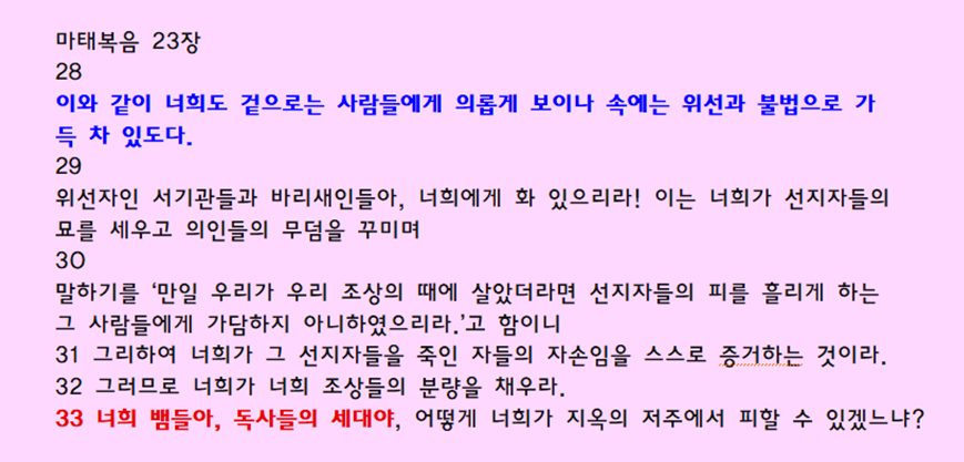 예수님이 지금 한국에 계신다면 아래 이 저주의 경고를 저와 우리 모든 사역자들이 들었을 겁니다.