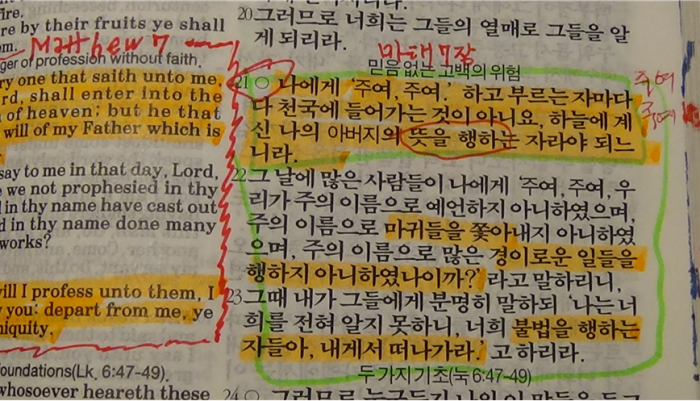 아래 말씀에 주여 주여 우리가 주의 이름으로 예언(설교 성직자 목회자들임) 하지 아니하였습니까? 그런데 왜 지옥으로 보내십니까? 라고 목회자들이 항의하면 불법을 행하는 목사들아 지옥으로 가라. 라고 하신답니다. 목회자들도 심판 기준이 물과 성령 즉 신약 성경 말씀과 성령으로 온전히 거듭나지 못하면 이 세상에서 공로는 아무 상관 없이 지옥 갈 각오를 하시든지 준비 하셔야 될것 같습니다.
