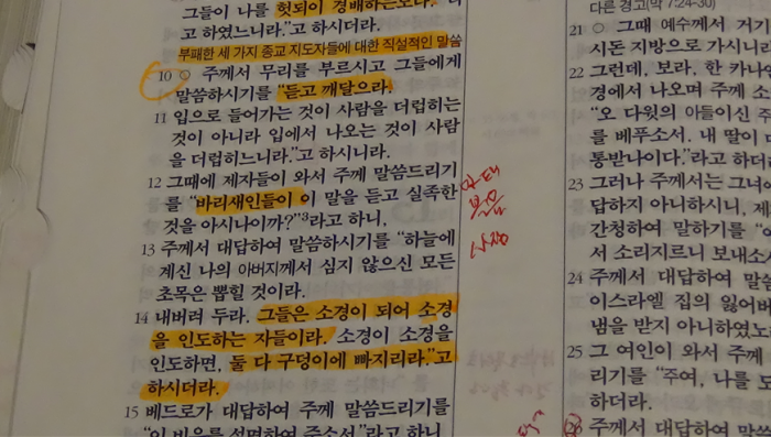 아래 영적 소경 목회자가 소경 교인들을 인도 한다면 어떻게 될까요? 같이 지옥 갑니다. 하나님 말씀과 성령으로 거듭나지 못한 목회자들에게 내 영혼 맡기면 그 목회자와 같이 지옥 가게 됩니다. 그래서 신약 성경 보시면서 회개하고 신약 성경대로 마음으로 믿고 지시대로 행동으로 순종 하세요. 내가 임종 순간 신약 예수님 말씀으로 내 영혼 심판 하시기 때문입니다.