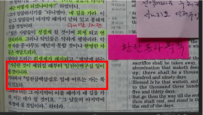그러나 너는 그 마지막이 이를 때까지 네 길을 가라. 이는 네가 쉴 것이요, 그 날들의 마지막에 네 땅에 설 것 (7년 환란 끝나자 말자 천년 왕국이 시작이 되는데 그 뜻인지 모르겠네요)임이라.” 하더라.