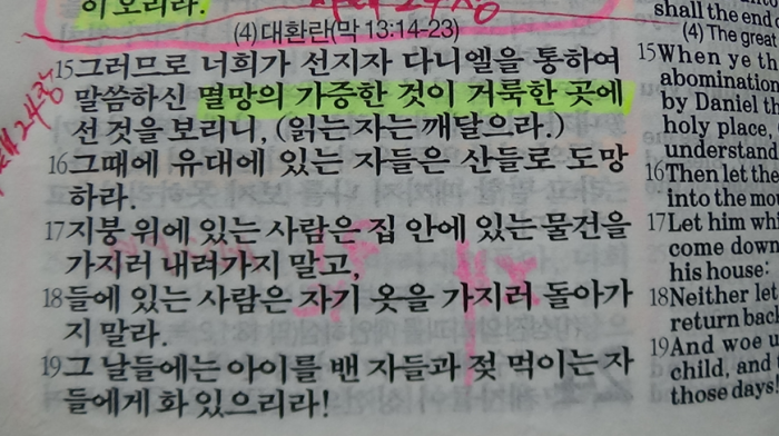 이는 그때에 대환란이 있으리니, 그와 같은 것은 세상이 시작된 이후로 지금까지 없