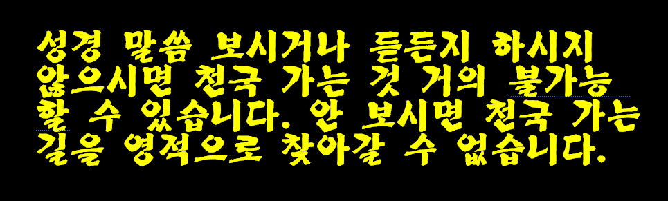 성경 안 보시면 내 영혼 심판 하실 예수님 기준에 선과 악을 알수 없고 천국가는 이정표도 알수 없기에 천국가는 것 불가능 합니다.