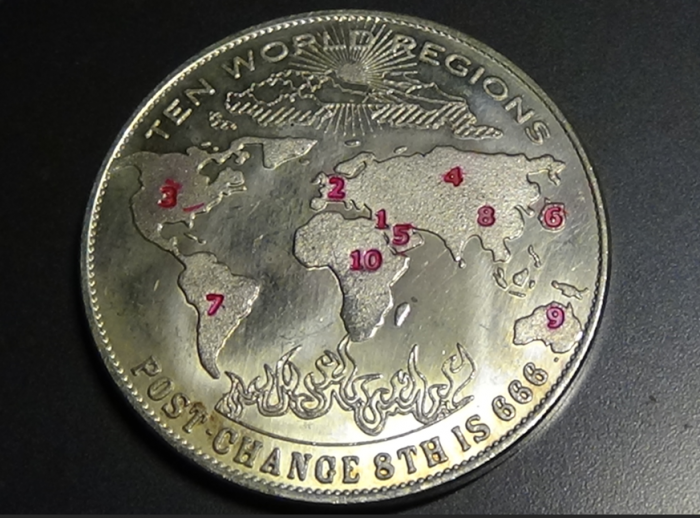 계시록에 보시면 열뿔 10개 국가로 만들어지면 한 시간 후에 한 개 국가로 연합을 한다고 기록 중인데 이 국가가 세계 단일 국가이며 이놈들이 외치는 새로운 세상 새로운 질서가 앞으로 필요 하다고 외치는 New World Order 국가인 계시록 13장에 짐승 같은 자들이 짐승처럼 666 디지탈 칩으로 디지탈 감옥 만들어 통치 한다고 666짐승 국가 라고 합니다.