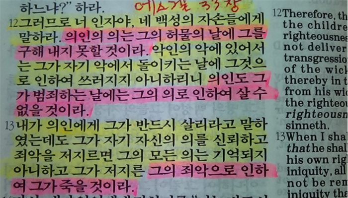 구원 성령 받은 자도 죄 짓고 회개치 않으면 뭐라고 했습니까? 예수님께서 하나님 신분으로 계실때 에스겔 선지자에게 글로 적어서 오늘 저와 우리들에게 전하라고 지시 하셔서 우리가 보고 있는 것입니다. 내 영혼 심판 하실 예수님께서 직접 하신 말씀입니다.