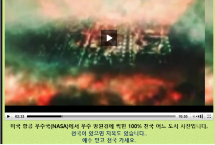 아래 미국 NASA 허블 우주 망원경 빌클린턴 대통령 시절 고장이나서 수리후 인간 조정이 아닌 자동으로 찍힌 100여장 사진에 천국의 한도시로 추정되는 사진입니다. 실제 사진입니다.