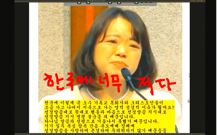 ---아래 천주영 선교사 천국지옥 간증 중에 예수님께서 한국교회 천국 갈자 너무 적다. 여러분은 어떤 느낌이 드십니까? 저는 1%도 안될것 같다는 느낌이 듭니다.