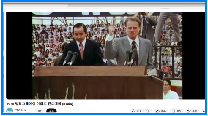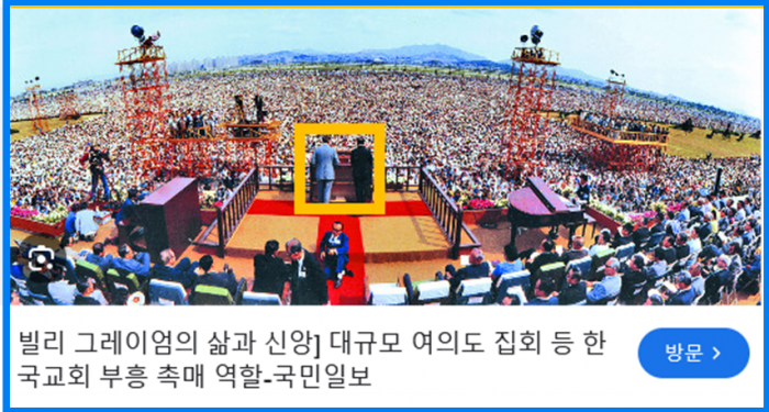 ---아래 미국에 세계 최고 부흥사인 빌리 그레함 서울 여의도 집회에 전국에서 복음에 갈증을 느낀 기독교인 100만 명이 모여 집회 장면입니다.