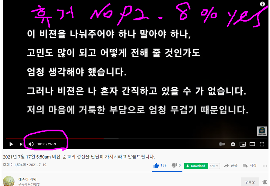 ---아래 2021년 간증 설교에 예수님께서 이 목사님 통하여 우리들에게 회개하고 구원 받아라는 경고를 보내고 계십니다. 각교회마다 구원 받은자 별로 없다고 하셨답니다.
