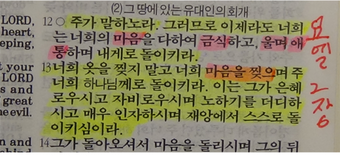 ---그리고 회개기도 할 때 요엘 선지자가 알려준 빨리 구원 성령 받는 기도자의 마음 자세입니다.