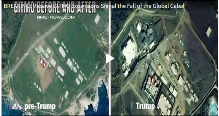 ---아래 관타나모 수용소 트럼프 대통령 취임 전과 이후 사진입니다. 소리소문 없이 많이 잡혀가 있다는 명백한 증거 사진입니다. 해외 미군 기지에도 감옥 신축 하는 것을 한국 정보기관 요원들이 보았다고 합니다.