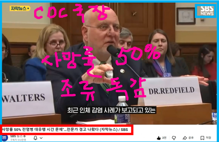 ---아래 국내 방송사 뉴스 발췌입니다. 조류독감 코로나 보다 사망 률이 최고 50배랍니다. 10명 걸리면 5명 죽을수 있다고 합니다. 미국 질병청 국장이 발표 하는데 이들이 666 한 패거리들입니다. 조류 독감을 박사들 투입해서 살인 무기로 만들었다는 뜻입니다. 똑같이 백신 속에 무서운 독극물을 넣은 코로나 백신처럼 효과 1도 없는 독극물 백신 접종 하라고 정부와 언론 유엔이 공모하여 공갈 협박 하면서 몸에 집어 넣을 것으로 보여 집니다. 여러분은 맞지 않는 것이 살 길입니다. 666 저들이 하라면 반대로 하면 됩니다.