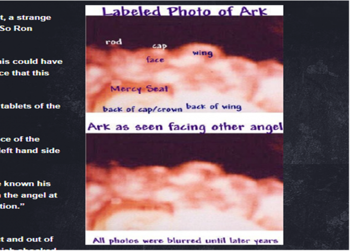아래 언약괘가 돌 상자 안에 사진이 맞는지 론와이어트 자료 속에 찾아 왔는데 언약괘는 돌판 상자 안에 있었다고 합니다. 바닥에 돌판도 보이고 상판에 그룹 천사 모형이 하나는 보이는데 하나는 반대편에 바위에 가려진 것인지 실물인지 아닌지 론와이어트 아들이나 부인과 통화를 한번 해보면 알텐데 영어가 안되어서 못 물어 봅니다.