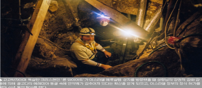 ---이스라엘 예루살렘 예레미야 동굴에서 언약 괘 발굴 중인 미국 론와이트 마취과 의사 사역자. 언약 괘는 예수님 순교하신 십자가 바위를 파고 꽂은 6미터 아래에 있었고 순교시 큰 지진으로 바위가 금이 가고 예수님 피가 십자가 타고 바위틈으로 언약 괘에 도달했고 천사가 피를 채취해서 분석하라고 해서 이스라엘 가장 큰 연구소에 의뢰 남편이 없는 염색체 예수님 피로 결론. 사진은 3가지 카메라로 언약괘 전체 여러번 찍었지만 살구꽃 문양 같은데 성경 기록상 그룹 천사 날개로 보여 집니다. 끝 부분에 미국 연락처 있으니 자세히 알고 싶으면 미국에 이분 부인이 살고 있고 부인은 발굴 작업 같이 한 분이기에 자세히 알기에 전화해 보세요. 동영상은 정리해서 네이브 선교 블로거에 올리겠습니다. 위에 링크로 들어가서 보세요.
