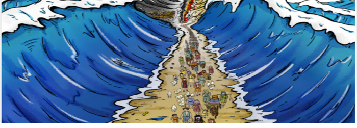 손들이 바다 가운데를 통과해서 마른 땅 위를 가리라.