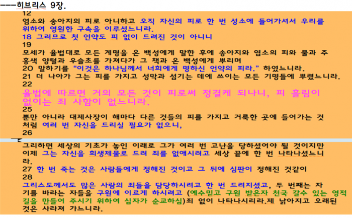 ---아래 예수님 십자가 순교해 주시지 않으셨다면 내가 죄를 지으면 아래 율법에 의해 내가 이런 절차로 죄 사함 받을수가 있습니다. 십자가 은혜 감사하게 생각합시다.