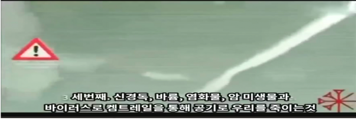 아래 가로줄은 금방 뿌린 것이고 뿌연 구름은 알미늄 분말 이며 타지역에서 뿌리고 바람 따라 퍼진 것입니다.
