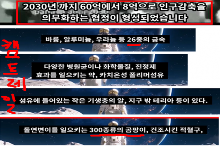 거짓말 같은 100% 진실이고 계시록 6장 8절과 13장 666국가 건설위해 그들만의 낙원을 만들려니 인구가 너무 많답니다. 이들은 666국가 설립이 최종 목표입니다. 코로나 백신 급조 한거라고 뉴스에서 사기 치던데 정확한 소식통이 정확하게 40년 전에 연구 시작했답니다. 팬데믹 2019년이 아닌 그 이전에 계획되었는데 미루어져 2019년에 실행했답니다. 다음 펜데믹도 이들이 계획 중인데 유엔과 언론과 정부가 야합하여 어떤 공갈 협박에도 더 이상 속지 마시기 바랍니다. 저의 주변 분들 걱정되어 진실을 알려드립니다.