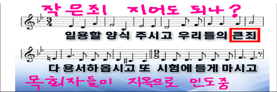 ---예수님께서 성경말씀 더하거나 빼거나 해서 전하면 지옥에 쳐 넣으신답니다. 주기도문 송이 반성경적인 것을 알던 모르고 부르든 다들 지옥 갈 확률이 매우 매우 높다고 볼 수밖에 없습니다.