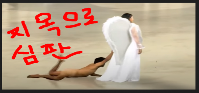 13-그러자 왕이 (예수님) 종들에게 (심판 담당 천사들에게) 말하기를 ‘그 사람의 손과 발을 묶어서 데리고 나가 바깥 흑암 (지옥에) 에 내어 던지라. 거기서 울며 이를 갈고 있으리라.’고 하였느니라.