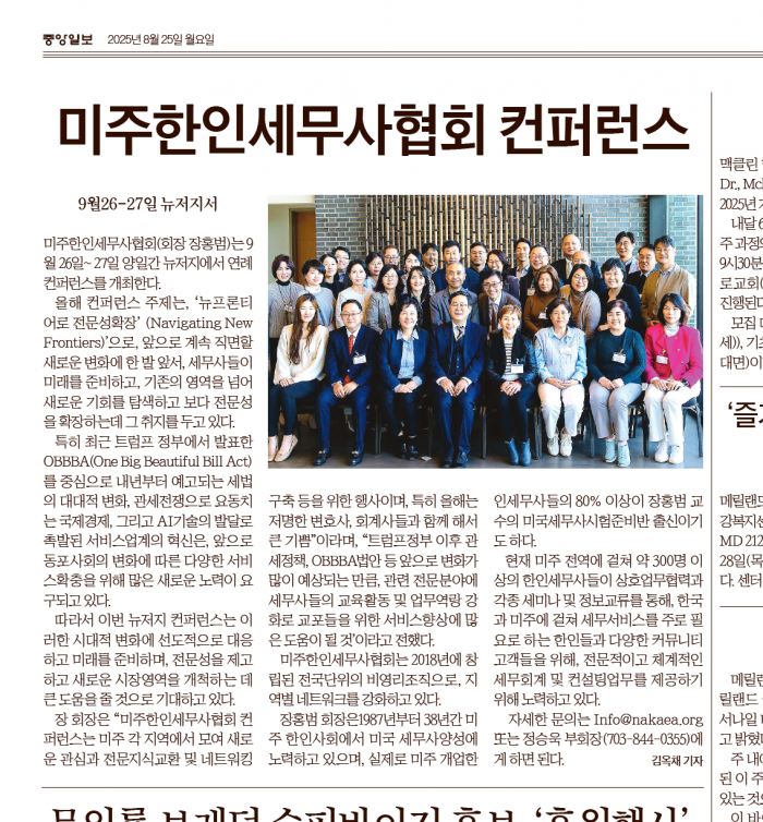 2025 전미한인세무사협회 컨퍼런스는 세무 전문가들이 급변하는 시대에 선도적으로 대응하고, 미래를 준비하는 데 필요한 지식과 통찰을 얻는 귀중한 기회가 될 것입니다. 세무 업계의 새로운 지평을 함께 열어갈 여러분의 많은 관심과 참여 바랍니다.