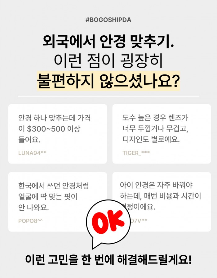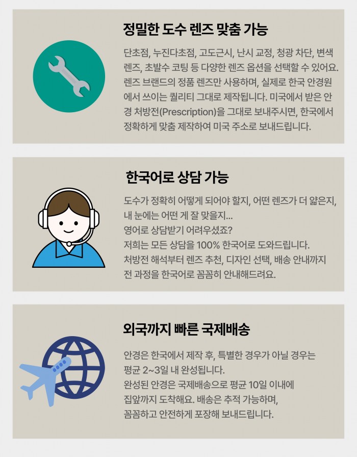저희는 다년간 한국 고객분들께 착용감 좋은 안경테와 한국안경브랜드,