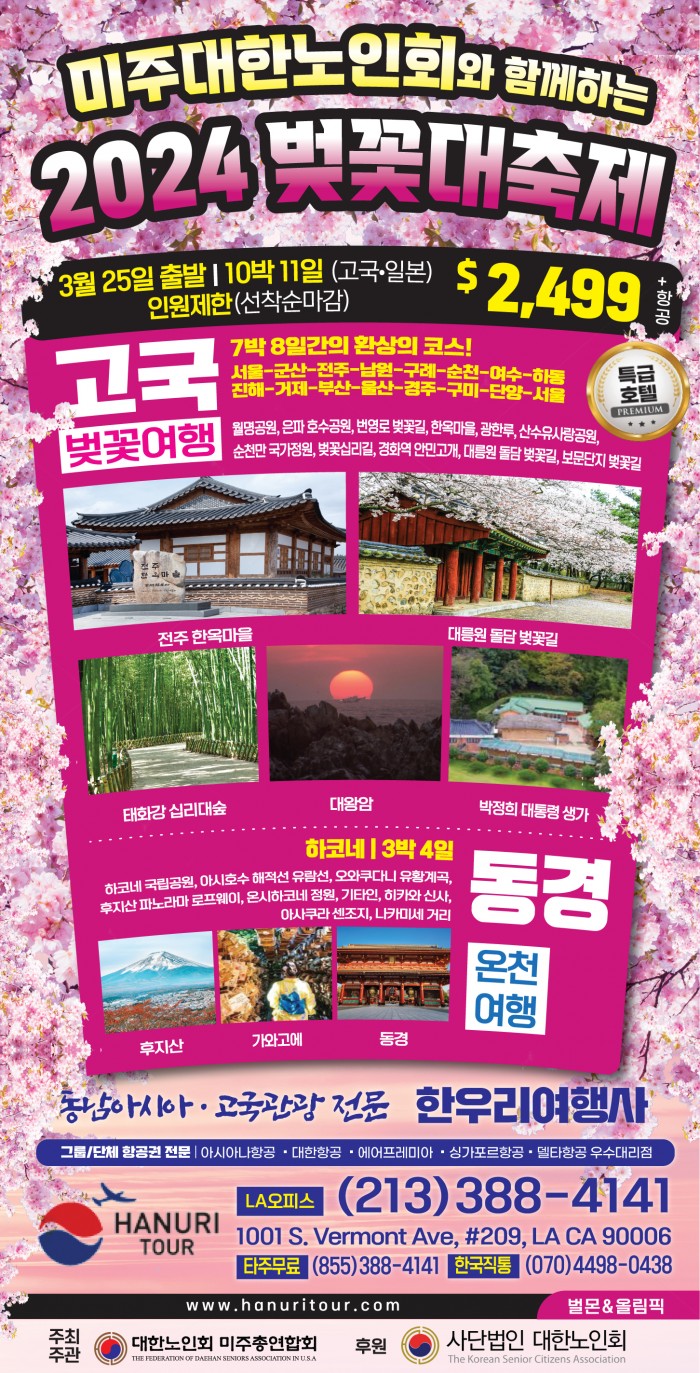 제목한우리여행사와 미주대한노인회의 벚꽃 축제(213-388-4141)