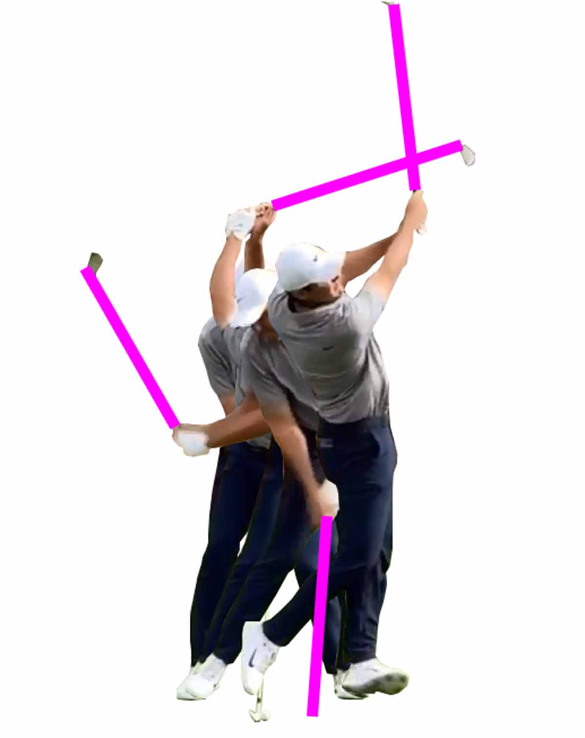 왼팔과 SHAFT 의 각도가 90도 정도를 이루고 있고