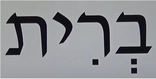 '브리트' 언약, 약속이라는 뜻입니다. 베트 아래 세로 점 두개는 모음이 없다는 표시구요, 그냥 '브'로 읽습니다. 다음 문자는 '레쉬'라는 친구인데 음가가 'ㄹ'이구요(20번째 문자랍니다.) 점 하나는 모음인데 음가가 'ㅣ'입니다. 그래서 '리'로 읽으면 됩니다.